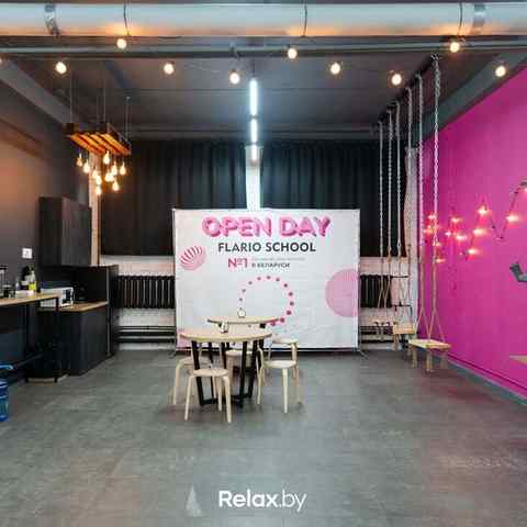 Школа красоты FLARIO (Фларио) в Минске на ул. Фабрициуса оформлена в стиле лофт. Черно-белые цвета в отделке, как «инь и ян», обозначают единство противоположностей, смягчают друг друга, образуя полную гармонию. Каждый зал оборудован неоновой подсветкой, что становится дополнением для ярких фотографий в Instagram. Стены украшены картинами современного искусства, что вдохновляет на создание нетривиальных работ для личного портфолио. В перерывах между занятиями ученики отдыхают в комфортных релакс-зонах на качелях с чашкой ароматного кофе.